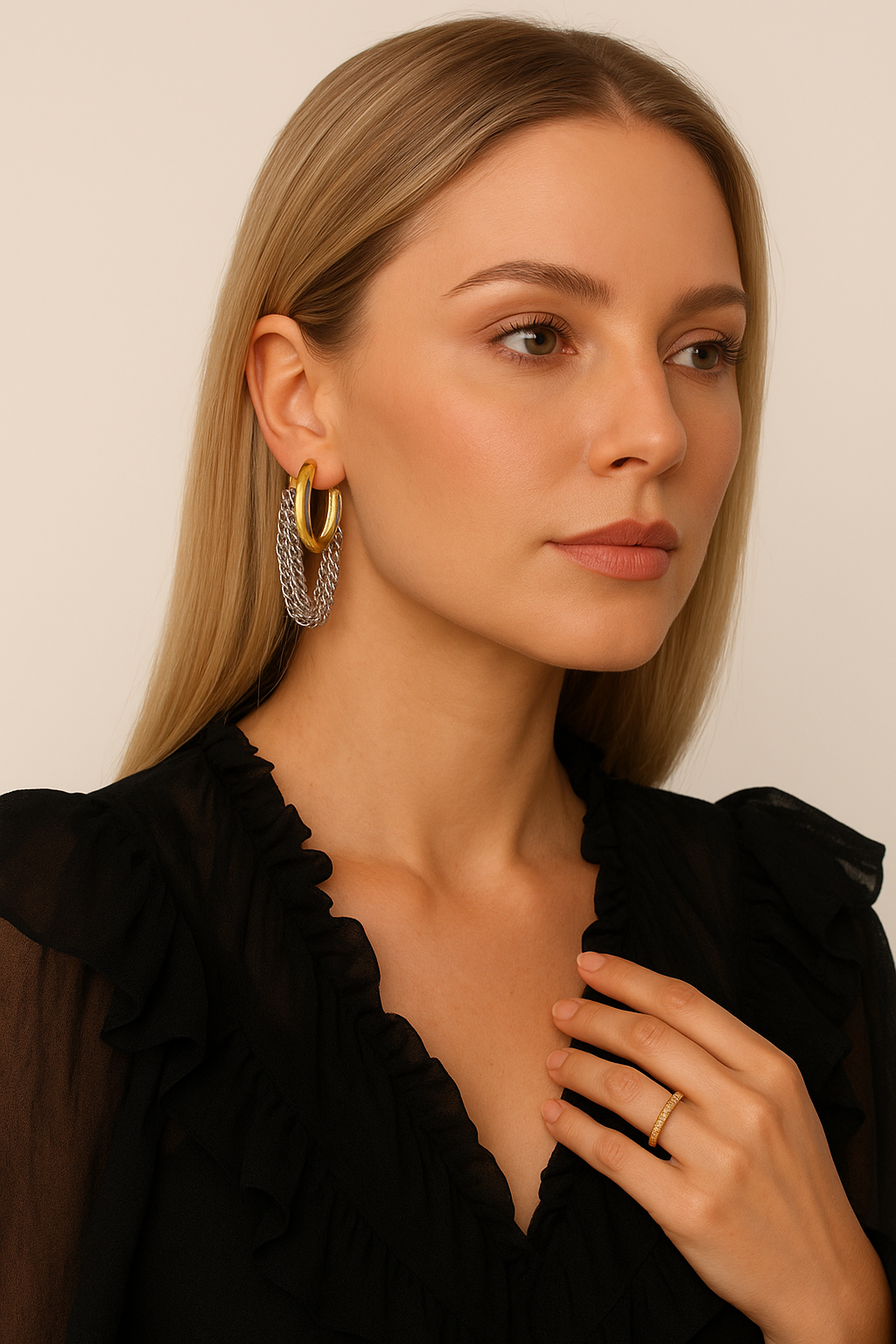 ⚪ Sem correntes – disponíveis em dourado e na cor prata , para quem prefere um estilo clean e atemporal.